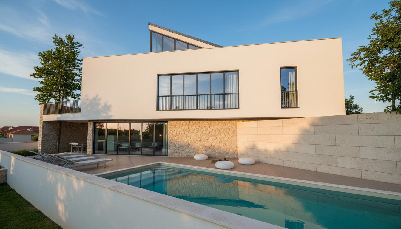 Izazov je bila uska parcela, iz koje je morala „izrasti“ kuća s bazenom. Ona je trebala djelovati moderno i luksuzno, no istovremeno respektirati lokalnu arhitekturu Ražanca i pogled prema moru i Velebitu.